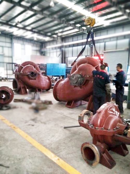 我司大型單級雙吸離心清水泵組裝現場(chǎng),應用于某大型水力電力工程項目所需!