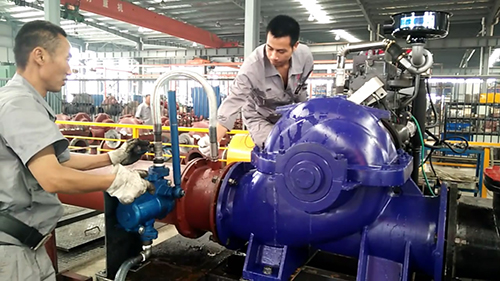 我司大型便攜式柴油機單級雙吸中開(kāi)式離心泵測試現場(chǎng)!