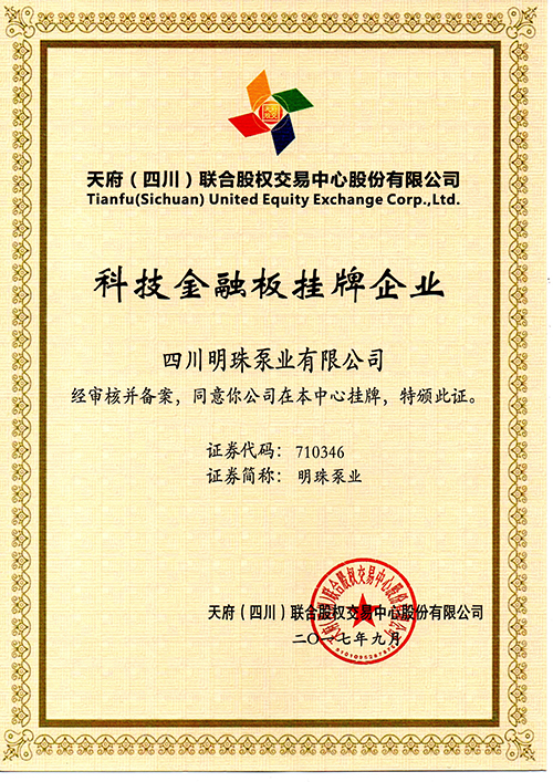 恭賀我司榮獲天府(四川)聯(lián)合股權科技金融板掛牌企業(yè)證書(shū)?。?!