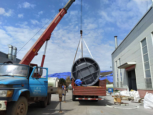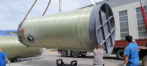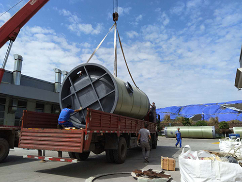 我司大型玻璃鋼一體化預制泵站裝車(chē)發(fā)貨現場(chǎng),應用于成都環(huán)保雨污水收集提升建設!