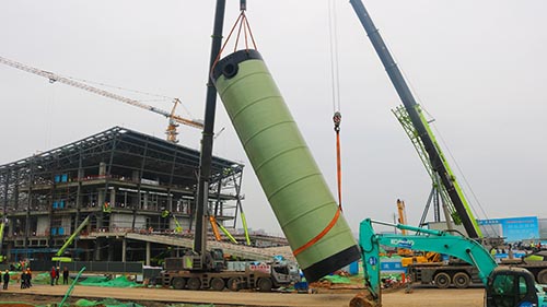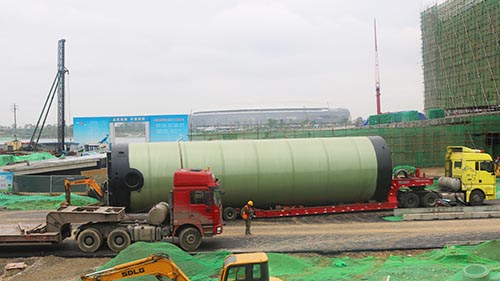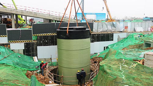 我司大型4.2*17米一體化預制泵站安裝現場(chǎng)應用于市政工程環(huán)保建設!